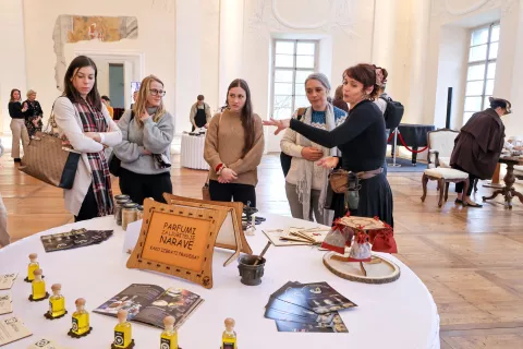 V slikoviti Baročni dvorani Radovljiške graščine se je predstavnikom turističnih agencij predstavilo osem ponudnikov iz starega mestnega jedra Radovljice. / Foto: Tina Dokl