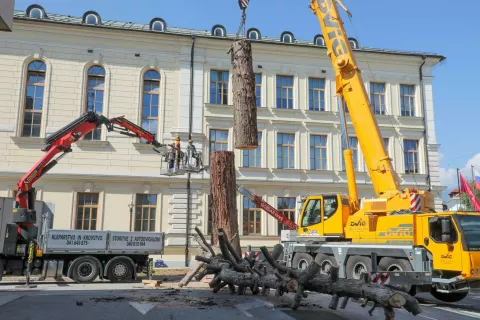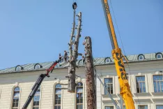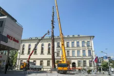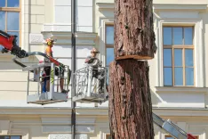 Orjaško sekvojo oziroma mamutovec ob kranjski gimnaziji so v soboto, kot napovedano, odstranili.