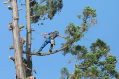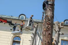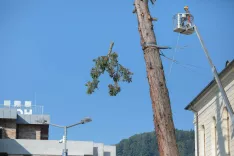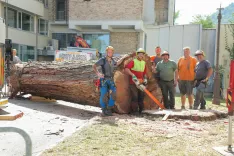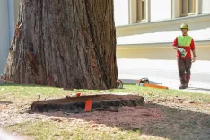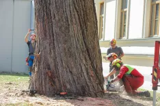 Kranj – Okoli 110 let star mamutovec (orjaška sekvoja), ki zaradi poškodovanega koreninskega sistema ni mogel več samostojno stati in so ga pokonci držale le še jeklenice, zasidrane v stavbo bližnje gimnazije Kranj, so minulo soboto, kot napovedano, odstranili. Zahteven posek 33 metrov visokega drevesa z obsegom debla 6,20 metra je izvedlo specializirano kranjsko podjetje Gozdar Kne, gozdarske storitve, ki se z zahtevnimi poseki ukvarja že več kot tri desetletja. Njegov lastnik Andrej Kne je povedal, da so les posekanega mamutovca tudi odkupili oziroma so za njegovo vrednost delno kompenzirali svojo storitev.