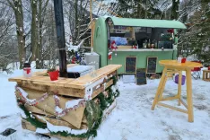 Šentančana zaznamujeta prijaznost in domačnost, kar nakazujeta že prikolica in njena okolica – in to je tisto, kar nas je pritegnilo. V zadnjih mesecih je bilo vzdušje prav praznično. Celo novoletno jelko smo opazili v bližini simpatičnih lesenih sedišč, pokritih z ovčjimi kožami. Čeprav je včasih ledeno mraz in piha veter, Lucija Rant za vsakogar najde lepo besedo. Nasmehov ji ne zmanjka. Njen partner je prišel tudi na idejo t. i. vročega šanka. »Star očetov 'kiperbuš' je obdal s paletami,« pokaže na zanimivo pridobitev, ki oddaja toploto. Lucija se je odločila, da ga bo pustila tudi poleti, saj je ugotovila, da združuje ljudi. Ob njem se namreč začnejo pogovarjati, čeprav se ne poznajo. Dodala pa je, da v njem poleti verjetno ne bo kurila.