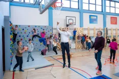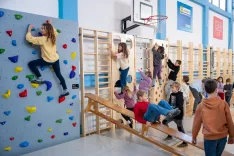 Šolarji so se posebno razveselili nove plezalne stene. / Foto: Nik Bertoncelj