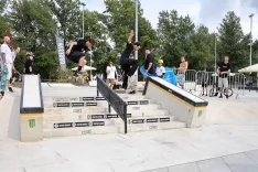 Kot se za odprtje rolkarskega parka spodobi, je po prerezu traku sledil skok čez stopnice. / Foto: Tina Dokl