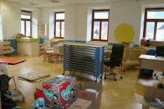 Selitev opreme, pripomočkov in drugih stvari iz učilnic, igralnic, telovadnice, kuhinje, garderob, kabinetov in drugih prostorov poteka v teh dneh. Ker za ves inventar na nadomestnih lokacijah ni prostora, ga bodo začasno shranili v objektu na Jezerskem vrhu, ki je za ta namen postal skladišče.