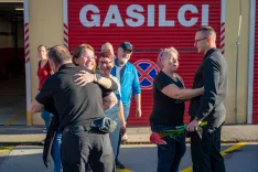 Člani PGD Radovljica so kolegoma v sredo ob prihodu iz Kanade pripravili prisrčen sprejem. / Foto: Nik Bertoncelj