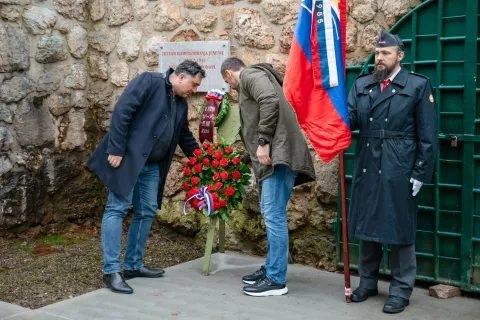 K spominskemu obeležju v Kolarjevem parku so položili venec. / Foto: Nik Bertoncelj