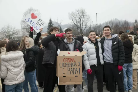 »Tudi v Sloveniji imamo pomanjkljivosti, ki bi jih bilo treba čim prej odpraviti, preden prerastejo v tragedije, kot je tista v Novem Sadu. Odnos države do šolstva in zdravstva je mačehovski. Učiteljev je vedno manj, šolski sistem zastarel, vlaganja minimalna. Morda bo požar v dijaškem domu premaknil razmišljanja in dejanja odgovornih v pravo smer,« je v govoru dijakom poudarila predsednica dijaške skupnosti Tavita Mihajloska, ki je podrobneje orisala dosedanji potek protestov in odzive oblasti v Srbiji. »Ti protesti so pomemben opomin, da lahko ljudje dosežejo spremembe, če se združijo in vztrajajo. Zato smo se tudi mi odločili izraziti solidarnost s srbskimi študenti,« je še poudarila Mihajloska.