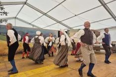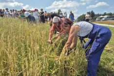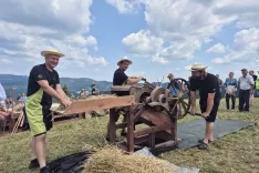 »Že sinoči sva želela priti zaradi igre in zaradi plesa, pa tudi zaradi prikaza kmetijske mehanizacije. Prikaz ročnih del je super, obudi mi spomine na to, kako sem pomagal očetu, da sva mlatila žito. Pa proso smo včasih meli; treba je imeti kovane čevlje, ata nam je pripravil lato, spodaj je dal snope, toliko časa si hodil po njej, da je slama ostala brez zrna. Super je, da naše društvo obuja tradicijo. Zdajle imava naprej še druge 'žure'. S kolesom sva se pripeljala mimo, a zvečer se vrneva,« sta nam povedala domačina Marija in Miran Oblak.
