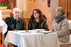 S predstavitve knjige Tri desetke Selške doline: prelat in kanonik Anton Slabe, avtorica Marija Gasser in povezovalka Damjana Peternelj / Foto: Simon Benedičič