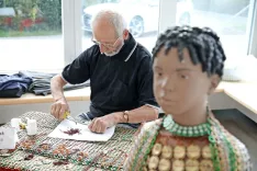 Iz odpadnega materiala ustvarja tudi eden od redkih sodelujočih moških na razstavi, Franci Bizjak iz DU Jesenice. Z ročnimi deli se ukvarja že 56 let, že vrsto let pa za material uporablja zamaške od steklenic. Iz njih izdeluje različne uporabne in okrasne predmete, kot so ženske obleke, pasovi, zavese, prstani in ogrlice. V zamaške je tako oblekel že več lutk, z dvema se je predstavljal tudi na Bledu.