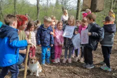 Kot je razložila Mojca Đerković, se skoraj vsak dan, če jim le vreme dopušča, z otroki odpravijo v gozd, kjer jim lastnik omogoča druženje v prijetnem kotičku, ki ima celo hišico na drevesu. A pasji iztrebki na poti do tja in v samem gozdičku niso nobena redkost. Tako se zgodi, da kakšen otrok stopi v iztrebek, za nameček pa je ta lahko tudi zdravju škodljiv. Da bi bilo neljubih situacij čim manj, so otroci iz starejše skupine na to temo narisali risbe za opozorilne table, na katere so dodali še sporočila, ki lastnike psov spodbujajo, naj počistijo iztrebke svojih ljubljenčkov. »Ker bi se čiste in varne narave naužili, ne bi radi v smeti in kakce stopili,« se glasi sporočilo na eni od tabel. Te so za zdaj še v začasni podobi – na listu papirja, zaščitenem s prozornim ovojem, a jih bodo zamenjale prave opozorilne table, ki jih bo izdelal dedek enega od otrok v vrtcu, je napovedala Đerkovićeva.