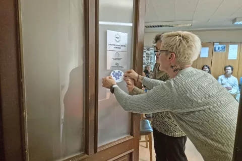 Demenci prijazno točko sta simbolično, z namestitvijo značilnega znaka, odprli dr. Zdenka Čebašek Travnik in direktorica Zavoda medgeneracijsko središče Komenda Mojca Šraj. / Foto: Ana Jagodic Dolžan