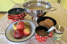 Pirin mlečni zdrob iz slovenske pire in slovenskega mleka s kakavom in cimetom ter slovenska jabolka topaz / Foto: arhiv šole