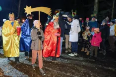 Na cilju so pohodnike obiskali Sveti trije kralji in koledniki Folklorne skupine Društva upokojencev Naklo, ki so po besedah Zdravke Klančnik tokrat pripravili kolednice, ki se vrtijo okoli svetlobe, luči in miru. »Širimo pozitivno sporočilo,« je dejala. Članice društva pa so poskrbele, da so se pohodniki po končanem pohodu tudi okrepčali. Dogodka se je kot vselej udeležil tudi župan Občine Naklo Ivan Meglič, ki je poudaril pomen nočnega pohoda za občino. »Na ta pohod smo zelo ponosni, saj sodi med najbolj obiskane dogodke v občini. Letos sicer nisem hodil, ker sem pomagal pri organizaciji in pripeljal še nekaj stvari, sem pa že dva dni prej preveril teren in lahko rečem, da je pot res odlična,« je dejal župan.