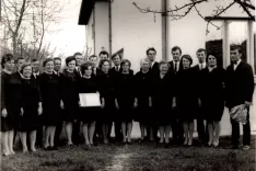Igralska skupina v ljudski igri "Miklova Zala" iz 50-let prejšnjega stoletja / Foto: Danijela Bakovnik