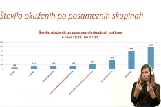 Ponoven je prišlo do vdora virusa v domove za starejše. Samo včeraj je število okuženih stanovalcev naraslo na 312, kar je največ doslej. Skupno je trenutno okuženih 2131 stanovalcev v domovih za starejše. Med zaposlenimi v domovih pa so včeraj ugotovili 59 novih okužb, skupno je aktivno okuženih 847 zaposlenih. »Kar 15 odstotkov včeraj okuženih predstavljajo stanovalci domov, če dodamo še tam zaposlene, je to skupaj 20 odstotkov na novo okuženih v populaciji. Z Nacionalnim inštitutom za javno zdravje (NIJZ) so znova dogovorjene bolj poglobljene analize ugotavljanja izvora okužb v domovih za starejše,« je na današnji novinarski konferenci povedal vladni govorec Jelko Kacin.