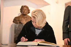 Včerajšnje dogajanje v Kranju so tradicionalno sklenili s srečanjem z letošnjimi Prešernovimi nagrajenci, ki jih je pozdravila tudi ministrica za kulturo Asta Vrečko.