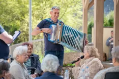 Povezovanje z lokalno skupnostjo se je odvijalo tudi v Domu upokojencev dr. Franceta Bergelja, kjer so SIJ prostovoljci z uporabniki doma igrali šah, balinali, jih presenetili s carskim pražencem ter razveselili z zvoki harmonike. Da je druženje izredno pozitivno in dobrodošlo, je prepričana tudi stanovalka Marjanca Kanc. »Zelo sem vesela, da so prišli. Naj še pridejo,« je dejala Marjanca, ki je skupaj s svojo hčerko Romano, tudi zaposleno v SIJ SUZ, udarila igro kegljanja na vrvi. Posebno pa je bilo tudi druženje v Društvu Lepa si. Tudi tam ni šlo brez odličnega praženca, prostovoljci so z varovanci društva igrali prstomet, pikado, peli, plesali in se zabavali. »V Skupini SIJ delujeta dve invalidski podjetji. Eno od njih je tudi SIJ SUZ, ki v delovno okolje vključuje ranljive skupine prebivalstva. Skozi lastno izkušnjo in zavedanje, kako pomembna je vključenost vseh, je letos tako na vseh treh lokacijah v naše aktivnosti vključenih skoraj 120 otrok in mladostnikov ter odraslih z motnjami v telesnem in duševnem razvoju, s katerimi poleg jeklenih spletamo prav posebne, srčne vezi,« je o vključevanju ranljivih skupin povedal mag. Andrej Pogačnik, direktor SIJ SUZ.