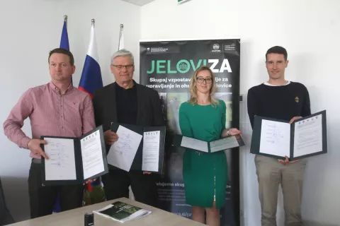 Kranj – Konec tega meseca se bo iztekel dvoletni projekt JeloviZA, v sklopu katerega so partnerji izvedli vrsto aktivnosti za večjo odpornost gozdov na Jelovici in oblikovali model upravljanja njenega območja na način, ki bo omogočal trajnostni razvoj za naravo in ljudi. Želijo, da Jelovica ostane območje miru na Gorenjskem. Ob prihajajočem zaključku projekta so v Kranju nedavno predstavili rezultate, župani občin Bohinj, Bled, Radovljica, Železniki in Kranj, ki si delijo območje planote, pa so podpisali pisma podpore njenemu trajnostnemu razvoju. »JeloviZA je lahko vzročen projekt, kako lahko različni partnerji sodelujejo pri skupnem izzivu. Projekta ni konec, to je šele začetek,« je poudaril v. d. direktorja Razvojne agencije Sora Gašper Kleč in pohvalil občine, da so aktivno pristopile k projektu.
