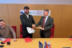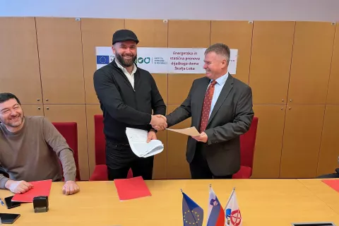 Direktor podjetja Arol Almir Dizdarević (levo) in direktor ŠC Škofja Loka Martin Pivk sta podpisala pogodbo o obnovi dijaškega doma. / Foto: arhiv ŠC Škofja Loka