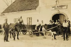 hišici. Hiša je imela majhno kuhinjo, vežo s črno kuhinjo in »hišo«. Preproste lesene stopnice so vodile v shrambo na podstrešje. Stara mama in stari ata sta imela nekaj gozdov na Jelovici ter njive in travnike na predtrškem in mestnem polju. Nasproti hiše, pod Katrinekom, je bil hlev s »podom«, kot smo rekli seniku. V hlevu sta imela kravo in vola, pri drvarnici pa svinjak z enim ali dvema pujskoma. Tudi nekaj kokoši je tekalo po dvorišču.