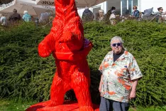 Kamnik – Tri metre visoka kričeče zelena skulptura pingvina s plastenko vode na hrbtu, rdeče obarvani orjaški psi, severni medvedi in ptice. V središču Kamnika, predvsem pa v bližnjem Arboretumu v Volčjem Potoku, te dni začudene poglede mimoidočih vzbujajo nenavadne skulpture, dela belgijskega umetnika mednarodnega slovesa Williama Sweetlova, ki sodeluje v ambicioznem umetniškem projektu.