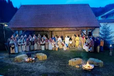 Adergas – Kulturno-umetniško društvo Pod lipo Adergas je v sodelovanju z Občino Cerklje na Gorenjskem ob zadnjem božiču (25. in 26. decembra) drugič pripravilo božično zgodbo z živimi jaslicami na samostanskem vrtu v Adergasu. Predstavo je soustvarilo več kot petdeset članov društva, ogledalo pa si jo je več kot tisoč ljudi. »Več let je tlela želja, da bi bile v Adergasu žive jaslice. S prisotnostjo živali smo še povzdignili lepoto bogatega izročila izpred dva tisoč let,« je povedala Angelca Maček, ki je pripovedovala božično zgodbo. »Če nam je s to božično zgodbo uspelo v slehernem ali v večjem delu prisotnih prižgati majhno iskrico božje ljubezni, potem je naše poslanstvo doseglo svoj namen,« je poudarila.