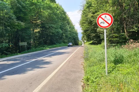 Znak o prepovedi vožnje s traktorji naj bi kmalu odstranili tudi na odseku regionalne ceste od Črnivca do Lesc.