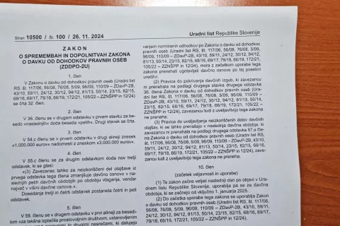 Državni zbor je novembra sprejel paket davčnih sprememb, med drugim tudi spremembe in dopolnitve zakona o davku od dohodkov pravnih oseb, ki jih bodo začeli uporabljati z novim letom.