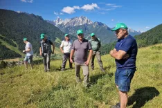 Podkoren – Odziv predstavnikov agrarnih skupnosti iz Zgornje Gorenjske na nedavnem srečanju je bil dober, najprej so si skupaj ogledali največji pašnik Agrarne skupnosti (AS) Podkoren Medvejek z 18 hektari pašne površine. »Na tem pašniku se pase štirideset govedi, v glavnem krave dojilje, nekaj imamo še telic in pa tri plemenske bike. Imamo še štiri druge pašnike, ki so v velikosti od štiri do sedem hektarov. Že v spomladanskem času pa točno določimo, kje bo kdo pasel,« je nekaj podatkov nanizal gospodar planine Medvejek Marjan Cuznar. Kot je poudaril, za vzdrževanje pašnikov redno skrbijo, in če so vremenski pogoji, kosijo (večinoma strojno) tudi trikrat na leto. Pašniki so redno oskrbovani z vodo, na vsakem imajo najmanj po dve koriti. Za nemoteno pašo na pašniku skrbi pastir, sedem jih je še aktivnih.