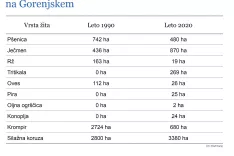 Na gorenjskih njivah prevladujejo ozimna žita, spomladi sejejo kmetje le še nekaj ječmena in ovsa. Kot pojasnjuje Marija Kalan, je zmanjšanje pridelovanja jarih žit posledica klimatskih sprememb. Zime so vse toplejše, in ker ni snega, tudi snežne plesni, nekdaj najbolj problematične bolezni ozimnega ječmena, ni več. Ozimni ječmen daje boljši pridelek kot jari, žanjejo ga prej kot jarega, zato je v padavinsko ugodnem letu možno po spravilu ječmena pridelati na isti njivi še silažno koruzo zelo zgodnjih hibridov.