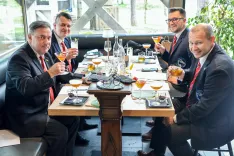 Okus so ocenjevali člani Društva barmanov Slovenije: z leve spredaj Edin Halačević, predsednik društva Rok Dobnikar, zadaj Bogdan Deželak in Anže Šmid. / Foto: Tina Dokl