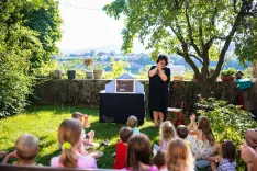 Urška Košir pesmice otrokom najprej predstavi s pomočjo kamišibaja. / Foto: osebni arhiv