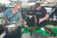 Številne na festival privabi okusna hrana. Za recept zanjo smo vprašali Bena Toplaka iz Makol. Z ekipo Ma-Kole BBQ team je sodeloval na tekmovanju v pripravi vseh štirih jedi: piščanca, govejih prsi, svinjskih pleč in svinjskih reber. »Imamo največji smoker v Sloveniji in nameravamo ga še povečati. Lansko leto smo na njem pripravili 14,9 tone mesa. Naenkrat gre vanj 350 kilogramov mesa. Recept za uspeh je 'nazaj h koreninam': sol in poper na govedino, na drugo meso pa pa dodamo še nekaj paprike in druge začimbe. Osnova je seveda kakovostno meso. Potem pa počasi pečemo, kot so to pekle že naše babice. Temperaturo spustimo, pečemo dlje in meso je bolj sočno,« je pojasnil. Tekmovalo je 24 ekip iz cele Evrope.