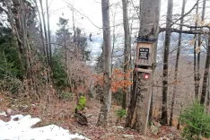 Ko dosežemo širok kolovoz, bi krajša pot do jeklenega konjička zavila desno, a moj predlog je, da zavijemo levo in se po kolovozu povzpnemo še na Cutov Laz, ki ga označuje vpisna skrinjica na drevesu in nekaj klopi. Kot zanimivost: očitno Cutov Laz pogosto obiščejo tudi Kitajci, glede na zapis dobrodošlice. S Cutovega Laza sestopimo v smeri Stočja. Sledimo markacijam in smerokaz nas usmeri desno Na Mihovo. Ko markirana pot zavije levo navzdol, pred seboj zagledamo dobro vidno stezo, ki preči pobočje. Stezi sledimo do še enega kolovoza, spodaj že vidimo tovarno Plamen. Po kolovozu dosežemo Srednji Konec in se po asfaltirani cesti povzpnemo do jeklenega konjička.