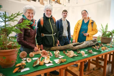 Člani Gobarskega društva Škofja Loka Sonja Dolinar, Klemen Bedekovič, Dominik Prša in Romina Pleško, predsednica mikološke komisije / Foto: Tina Dokl