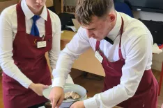 Razkosavanje in serviranje piščanca pred gosti je zelo zahtevno delo, ki sta ga Rebeka Lamovec in Maks Rakovec odlično opravila. / Foto: arhiv GTŠ