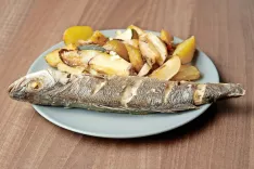 Za pripravo pečenega brancina s krompirjem in zelenjavo potrebujemo: nekaj srednje velikih brancinov, mlad krompir, mešano zelenjavo: papriko, bučko, šampinjone, por ..., olivno olje, česen, rožmarin, sol.