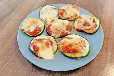 Za omako skupaj zmešamo paradižnikovo mezgo, ščep bazilike in origana ter ščepec soli in popra. Bučke narežemo na pol centimetra debele kolobarje ter jih položimo na papir za peko. Po vrhu jih pokapljamo z olivnim oljem ter postavimo v pečico, segreto na 180 °C, za 10 minut. Po tem času jih vzamemo iz pečice ter na vsako bučko nadevamo žlico paradižnikove omake in nanjo še malo mocarele. Pekač postavimo nazaj v pečico in pečemo še 10 minut.