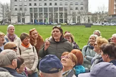 Med vožnjo proti središču mesta nas je spremljala Aleksandra Torbica z Mestne občine Nova Gorica. Aleksandra, po izobrazbi arhitektka, nam je predstavila vizijo arhitekta Edvarda Ravnikarja pri načrtovanju Nove Gorice – mesta v parku. Pred občinsko stavbo, ki velja za središče mesta, nam je razložila, da je glavni trg Nove Gorice pravzaprav travnik, ki simbolno odraža trg v Gorici na italijanski strani, ki se v slovenščini prav tako imenuje Travnik, italijansko pa Piazza Vittoria.