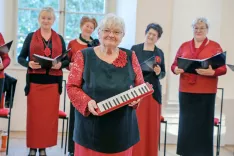 Pred 14 leti je prevzela še vodenje Vokalne skupine Društva upokojencev Bled, s katero je v slabem desetletju in pol naštela skoraj dvesto nastopov, zadnjega jeseni v Baročni dvorani Radovljiške graščine. »Če bi seštela vsa pevska leta, bi se jih zagotovo nabralo za več kot osemdeset, kolikor jih imam,« pravi s širokim nasmehom in zraven hvaležno doda, da jo je pri pevskih podvigih vedno iskreno podpiral tudi soprog, pa čeprav je bil v vsem tem dolgem in bogatem obdobju na njenih koncertih zgolj – dvakrat.