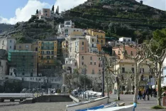 Opazim, da Neapelj proti jugu postaja vse bolj razdrobljen: predmestje počasi prehaja v manjše zaselke, dokler se betonska veriga pri Pompejih popolnoma ne prekine in se na vzpetinah v daljavi začnejo pojavljati prve vasice Amalfijske obale. Z Nejcem spretno vijugava med neobzirnimi italijanskimi vozniki, pri razcepu za Pompeje zaobideva dolgo kolono vozil in hitiva proti Salernu. Mesto je skrajna južna točka 50 kilometrov dolge Amalfijske obale, ki jo zaznamujejo v nebo segajoče pečine, očarljiva majhna mesta in ozka panoramska cesta, ki s pogledom na turkizno morje in neskončnost horizonta nosi naziv ene izmed najslikovitejših na svetu. Obala letno privabi več kot pet milijonov obiskovalcev, vendar pa si zaradi vrtoglavih cen in razkošnih resortov počitnice tu privoščijo le redki.