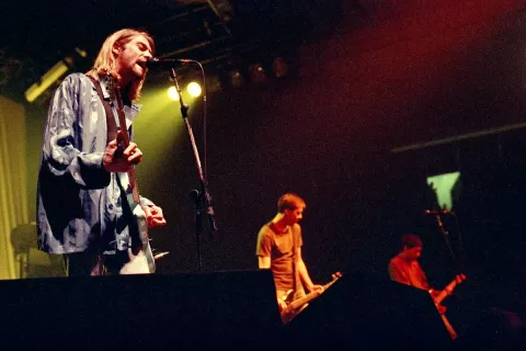 Nirvana na svojem zadnjem v celoti izvedenem koncertu v Ljubljani februarja 1994 / Foto: Janez Pelko