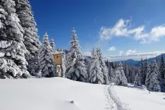 Če bomo dovolj zgodnji, se bo pred nami pokazal zasnežen, deviški travnik. Do vrha se povzpnemo po desni strani travnika.