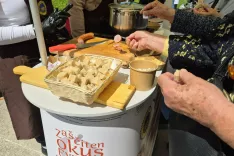 Po podatkih omenjenega združenja – in kot je bilo slišati tudi med obiskovalci – je na mizi najpogosteje kuhana klobasa z naštetimi dodatki, kruhom ali še kakšno drugo prilogo, kot je na primer repa. A nabor možnosti, kje in kako jo lahko uporabimo, je širok, pravi Medvoščan Jure Galičič, ki je tudi tokrat na festivalu delil svoje kulinarične ideje. Nekdanji tekmovalec MasterChefa Slovenija je kranjsko klobaso vključil v sataraš in združil s fregolo – drobnimi okroglimi testeninami, ki spominjajo na kuskus.