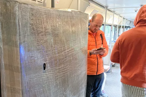 Najnovejša »vreča« za kolo na tramvaju / Foto: Rok Logar