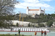 Pot nas je vodila proti mostu SNP (Novi most), od koder je bil čudovit pogled na Bratislavski grad, ki stoji na vzpetini nad mestom. Skupna dolžina mostu je 430,8 metra. Na mostu sta po dva prometna pasova za vsako smer vožnje, pod nivojem ceste pa sta dve poti, namenjeni pešcem in kolesarjem. Po mostu smo se zapeljali do hotela v središču mesta, kjer smo tisti dan zaključili etapo.