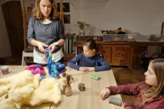 Pod vodstvom Petre Vengar so v Rokodelskem centru Škofja Loka minuli petek prvič pripravili delavnico suhega polstenja za otroke. / Foto: Mateja Rant