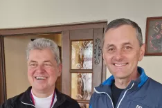 Jeseniški župnik Tilen Obervalder Zupanc (levo) in predstavnik organizatorjev Igor Stepan (desno)