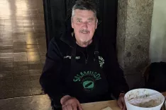 Marjan Grajzar iz Šenčurja je letos, kot se je izrazil, na »vpisnem mestu Salamiade« že drugo leto na kruhke mazal pašteto. »Lani je bila divjačinska, letos je pa perutninska, obogatena z jurčki. Pripravil sem navadno in pikantno. Odziv je fenomenalen, tale skleda je bila polna, zdaj pa poglejte, koliko je je še ...«