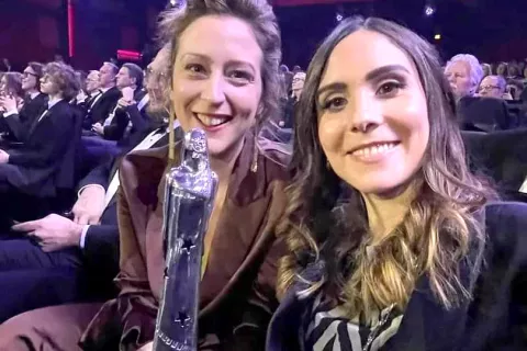 Urška Djukić (levo) in Émilie Pigeard z nagrado za najboljši kratki film / Foto: Arhiv Urške Djukić